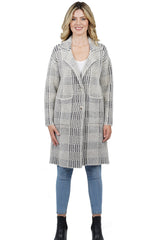 Cooler months call for an even cooler jacket. This coat is a soft knit, extra-long, cozy jacket that?s perfect for throwing on on the Fall days. Notched lapel collar. Button front enclosures. Material: 34% Polyamide / 23% Viscose / 23% Nylon / 20% Polyester