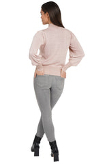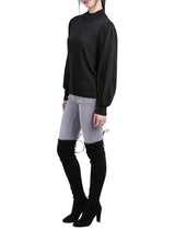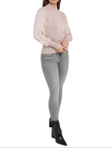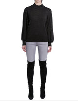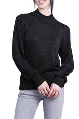 Our Evelyn mockneck sweater is perfect for a night out, it features a subtle shimmery effect, puff sleeves with fitted cuffs, ribbed hemline and relaxed fit.